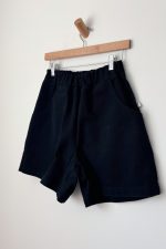 Large: Waist 14” relaxed, Hip 24″, Inseam 5”, Leg Opening 13 1/2″, Rise 11 1/2″