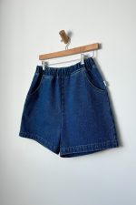 Medium: Waist 13” relaxed, Hip 23″, Inseam 5”, Leg opening 13 1/4″, Rise 11 1/4″