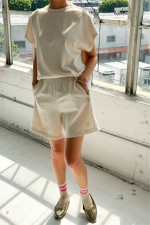 Dream shorts inspired by retro basketball shorts — Crafted from a heavy weight cotton knit, the Flared Basketball Shorts feature an elasticated, high waist with an A-line shape. They’re full coverage, yet flattering and designed with a slightly shorter outseam and perfect mid thigh length.