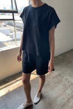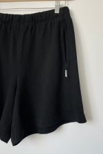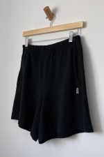 Large: Waist 14” relaxed, Hip 24″, Inseam 5”, Leg Opening 13 1/2″, Rise 11 1/2″