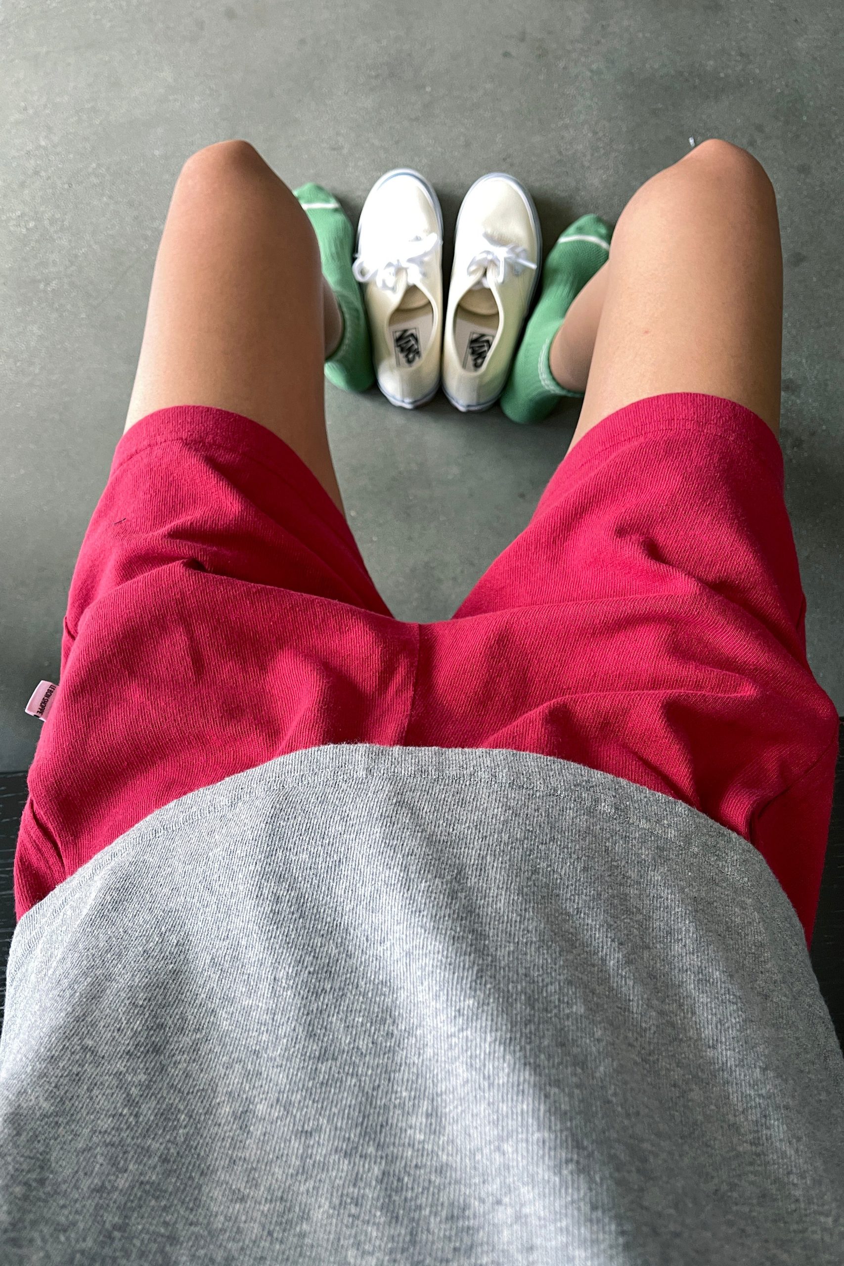 Dream shorts inspired by retro basketball shorts — Crafted from a heavy weight cotton knit, the Flared Basketball Shorts feature an elasticated, high waist with an A-line shape. They’re full coverage, yet flattering and designed with a slightly shorter outseam and perfect mid thigh length.