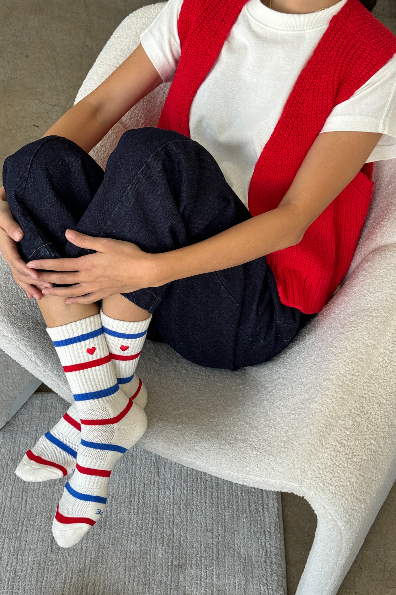 The Granny Sweater Vest is the ideal layering piece to complement your collection of closet essentials. With its slightly cropped, boxy fit, it effortlessly adds versatility to any outfit. Style it open-front for a classic look or turn it around, clip it at the back, and wear it as a true vest. The possibilities are endless.