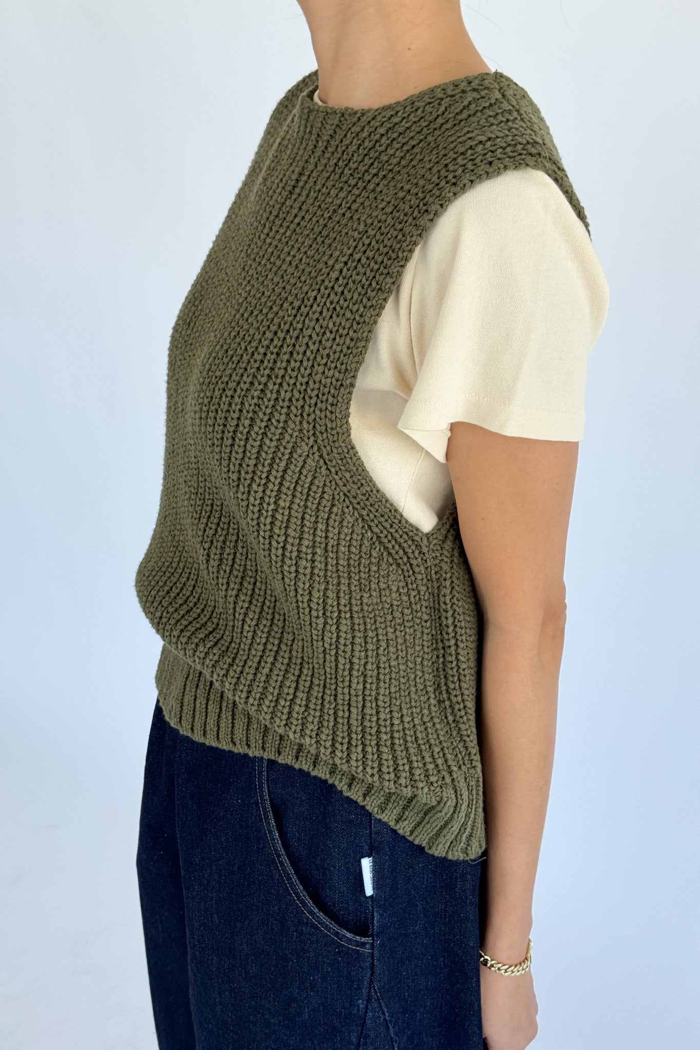 Granny Cotton Sweater Vest – Olive Green