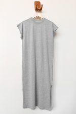 The Jeanne Dress is a perfect blend of our bestselling Her Dress and Jeanne Tee. Slightly oversized with extended shoulders, it channels the classic muscle tee vibe. Featuring a playful high slit, this dress combines effortless style and comfort, making it your go-to piece all season. Versatile and easy to style, it’s the ultimate travel essential.
