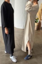 The Sunday Dress pays tribute to our bestselling Sunday Tee and Her Dress, offering the perfect blend of comfort and style. With a menswear-inspired fit and a subtle, playful high side slit, this ankle-length dress effortlessly combines masculine details with feminine flair. The sleeves are wide enough to roll up, making it an easy addition to your wardrobe staples.