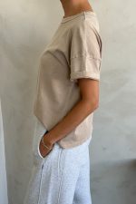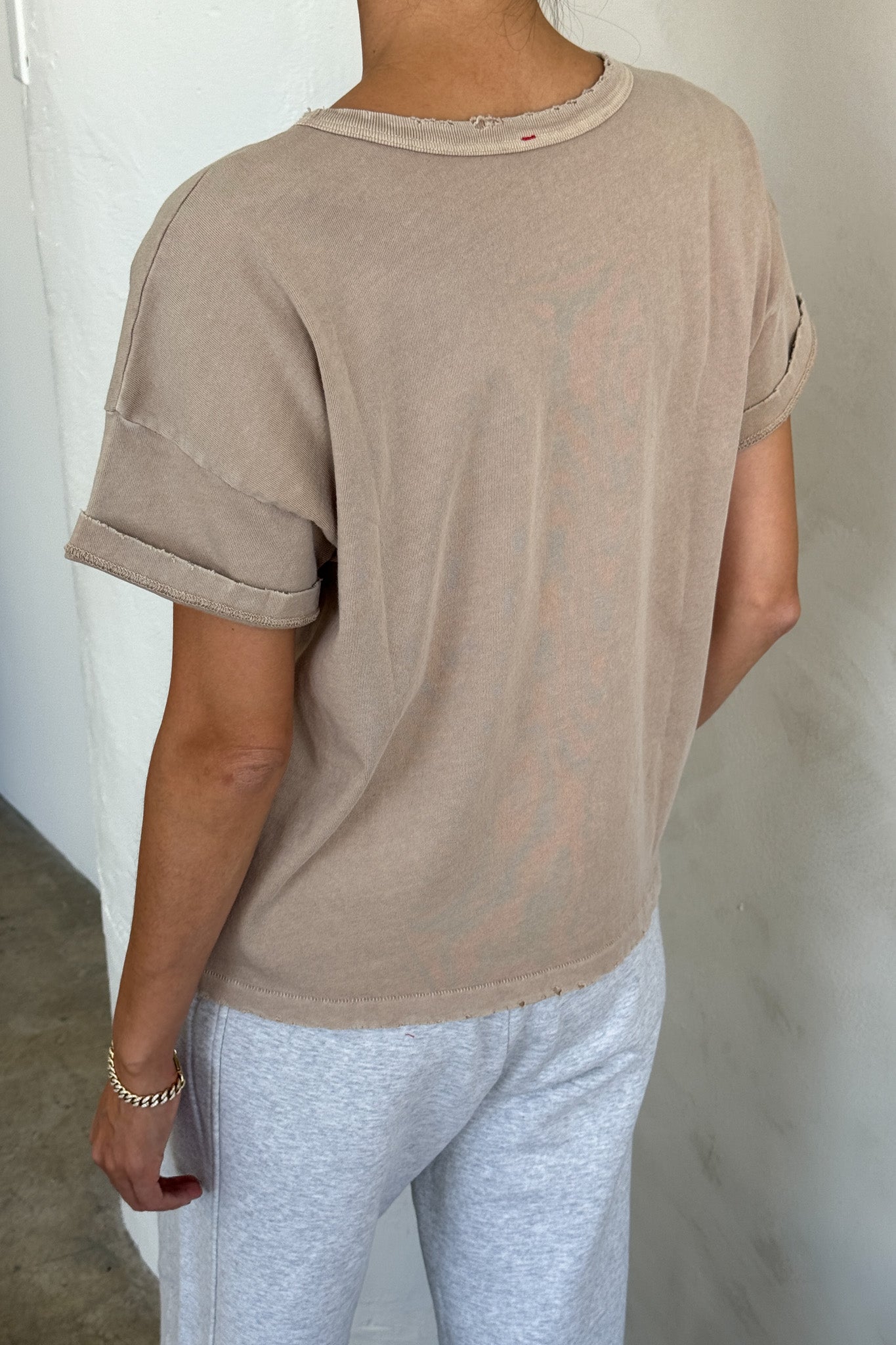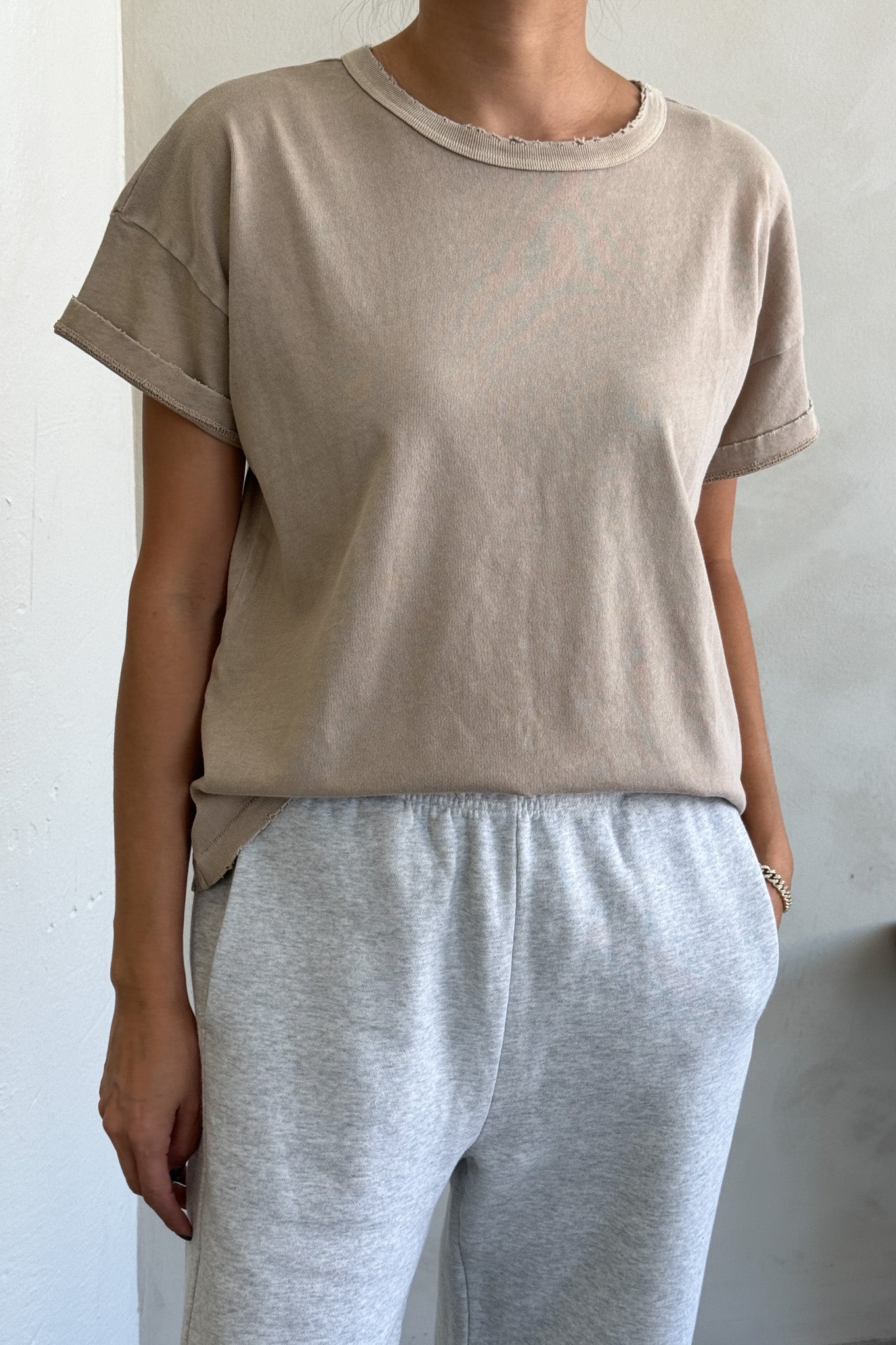 The perfect cropped but not too short tee to pair with all your high waisted bottoms is here to stay. Fille Tee is the exact length that you have been searching for in a shorter tee to wear untucked. With a light vintage distressed detail she will give you that oh so effortless look.