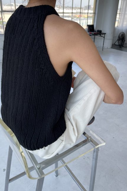 Claire Cotton Sweater Tank – Black