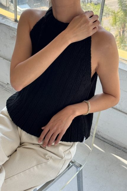 Why We Made This? A refreshing and elevated take on the halter top. It follows a modern silhouette that draws